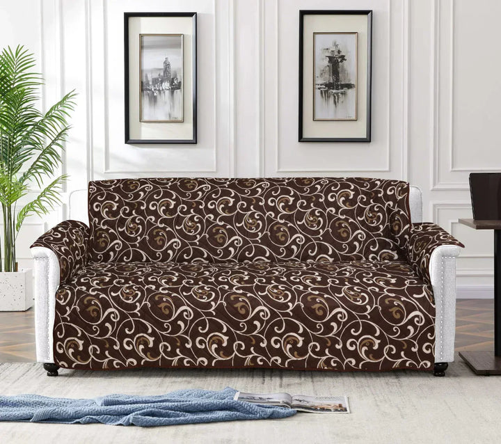 Printed Quilted Sofa Cover - Sofa Coat/Sofa Runner - (BROWN)